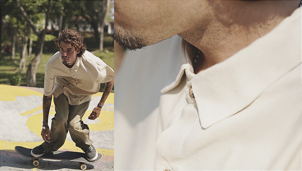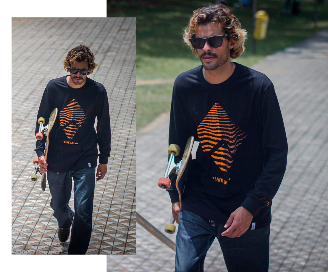 Bruno Meira... Designer gráfico, letrista, live painter dos mais brabos da região e também um grande irmão da marca, colaborou com a criação da estampa Shine (camiseta azul). Estampa que visualmente e conceitualmente vai de encontro com os ideais da marca.
