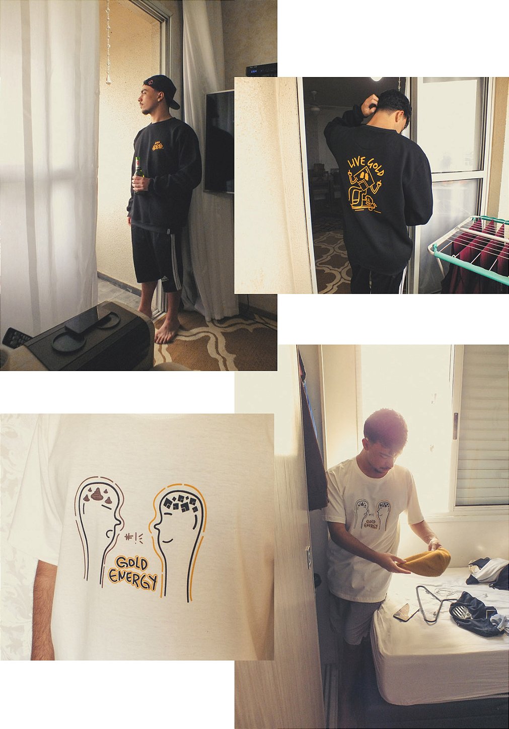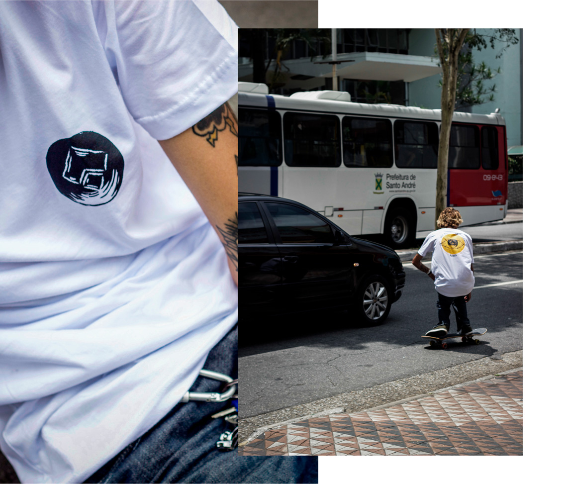Nestas primeiras peças procuramos realizar collabs com artistas locais do ABC Paulista, mais precisamente de Santo André, no intuito de exaltar e mostrar para o planeta que nossa cidade também é um berço de artistas fodas.
